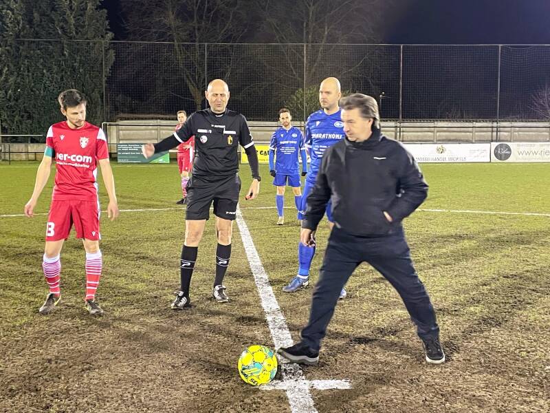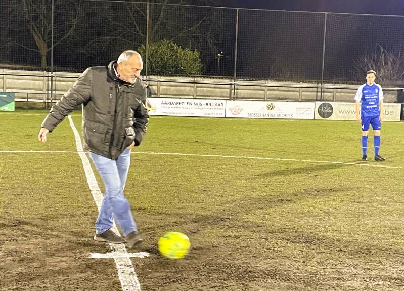 Jos Janssens van Crelan kantoor Aarschot trotseerde de regen en gaf de aftrap van de wedstrijd tussen KVC Langdorp en SC Aarschot B. Onze blauw-witten trokken aan het langste eind met een 4-2 overwinning. Nadien trakteerden Jos en Nancy het team nog op een pintje. Bedankt voor de steun, Jos!