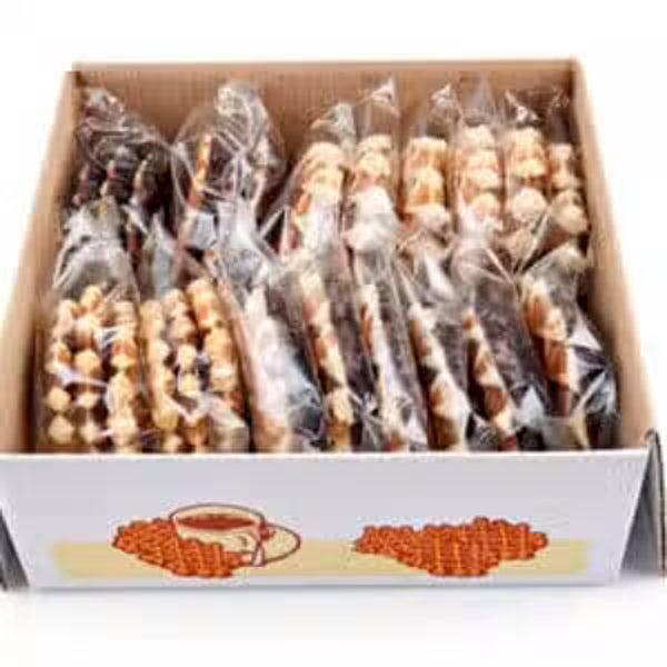 6 vanillewafels, 6 vanillewafels met chocolade, 2×3 boterwafels & 2×3 boterwafels met chocolade, individueel verpakt in kartonnen doos